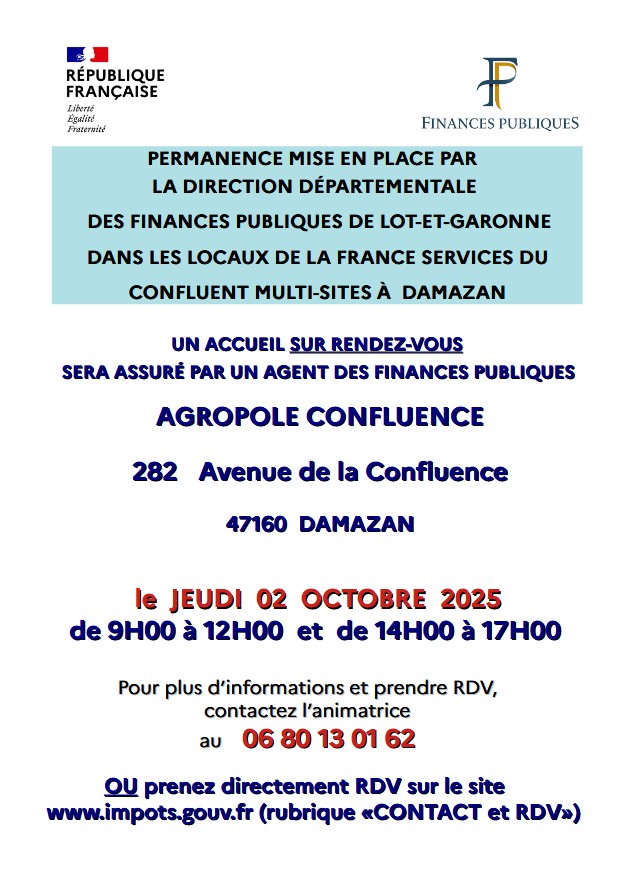 Permanence des impôts à DAMAZAN jeudi 2 octobre 2025